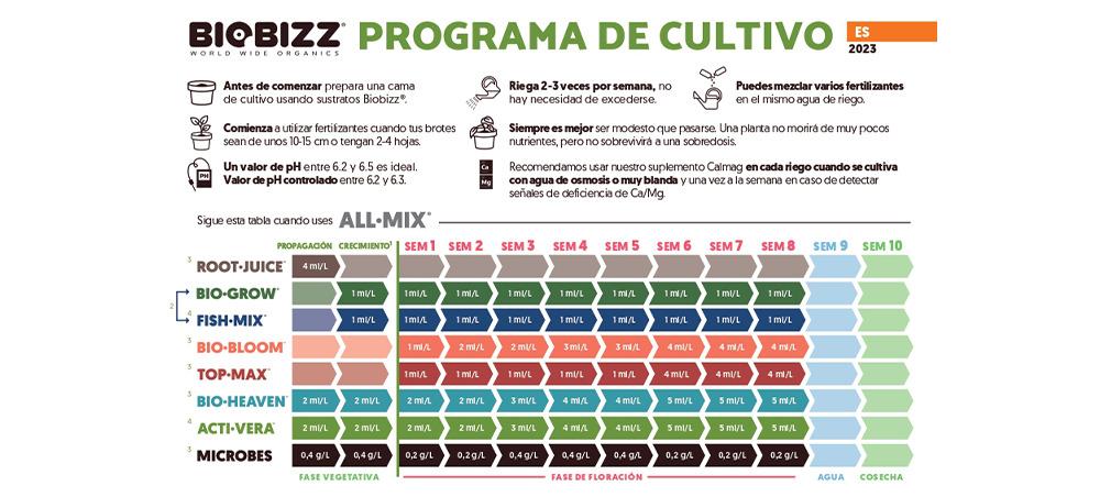 A rasgos generales, el programa de cultivo de la tabla BioBizz indica que: