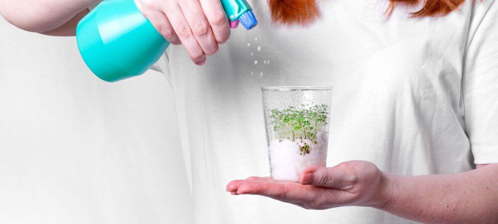 - Llena el vaso con agua limpia, mucho mejor si es agua filtrada o embotellada. Es importante que esté a temperatura ambiente, entre 20-25 °C, para no estresar las semillas.
