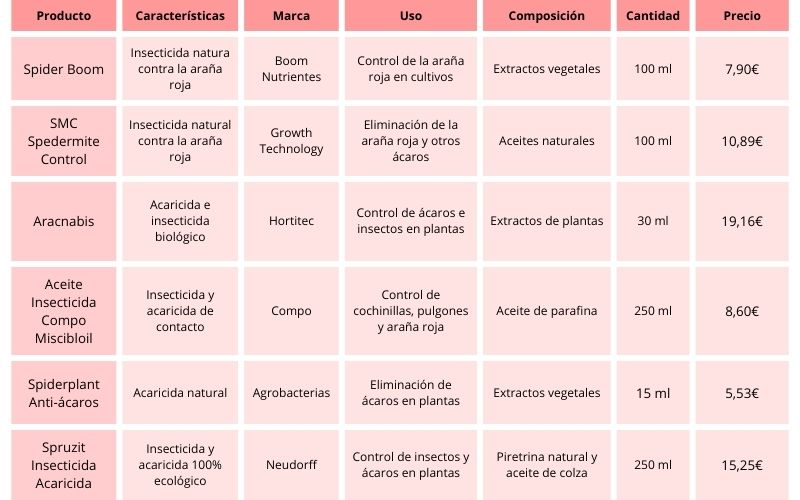 Algunos de los mejores insecticidas para araña roja disponibles en nuestra web son los siguientes: